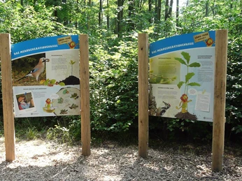 Various stations provide knowledge about the forest and its inhabitants in a playful way. A forest xylophone invites you to make music, a woodpecker cave can be entered and the forest glasses provide exciting insights. From the cosy lounger, you can look into the trees and listen to the sounds of the forest. Balancing beams are waiting to be conquered and from the LÖWE tower, the treetops can be viewed up close. Finally, visitors can talk about their impressions and experiences on the tree telephone. The LÖWE forest adventure trail is great fun - a "tree nursery" in the truest sense of the word and without any bench-pressing.