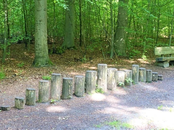 Auf der Sitzpyramide (13) kann man noch einmal die Sonne genießen, bevor an Station 4 (14) die Forschung im Wald beginnt.